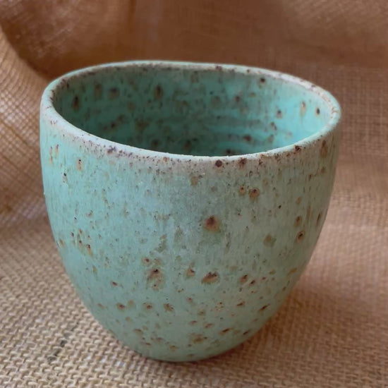 Flecked stoneware adds extra texture on the mug. Smooth but also tactile.