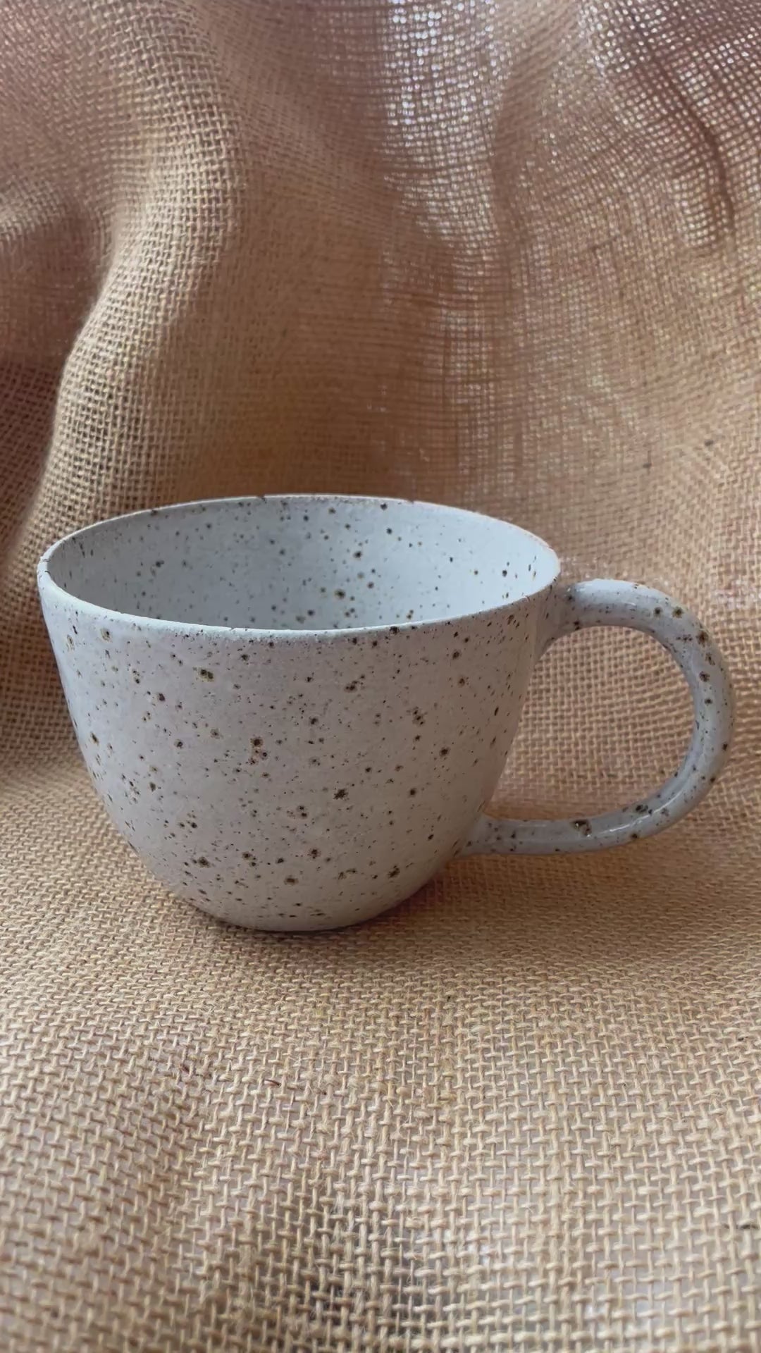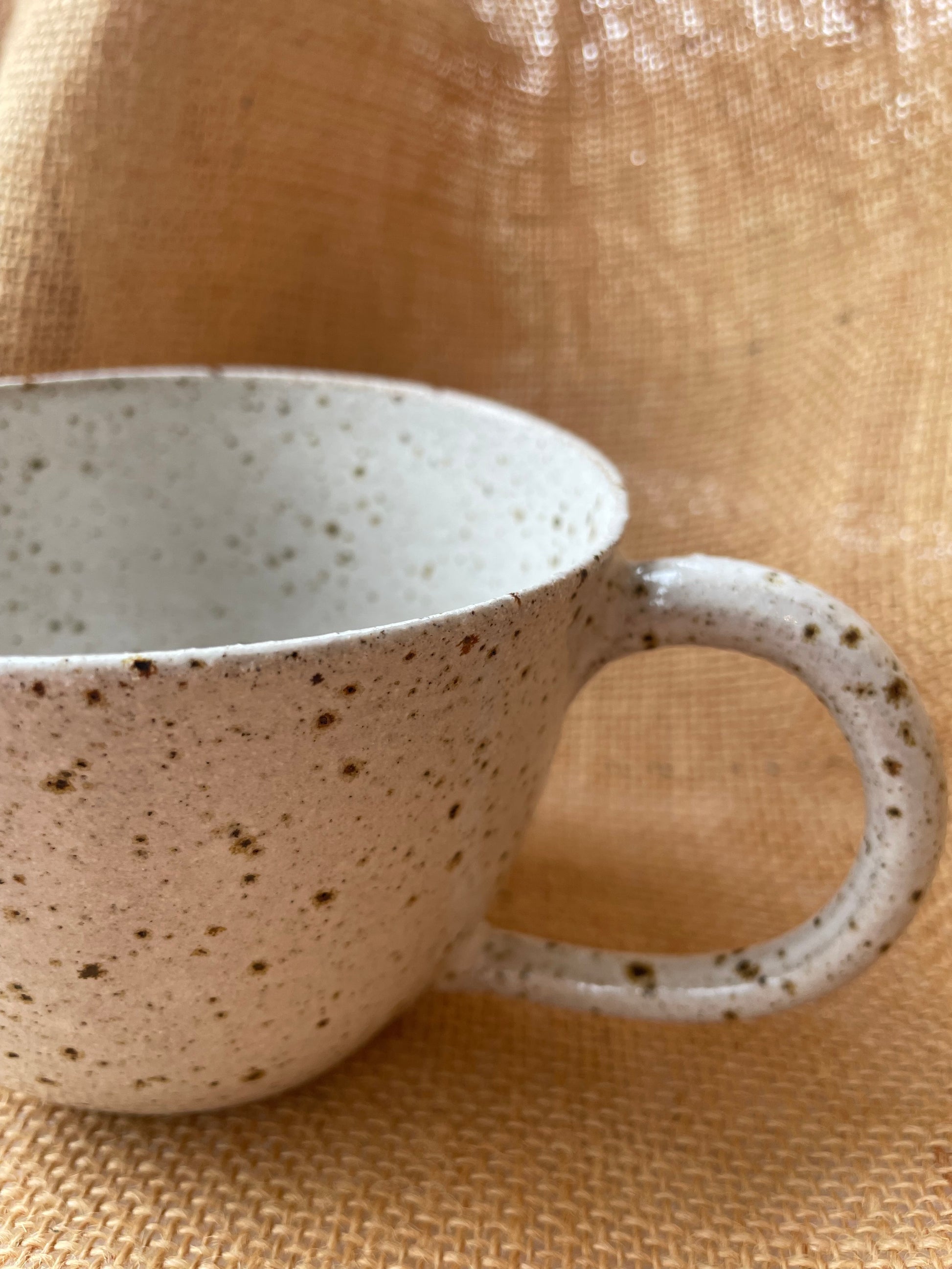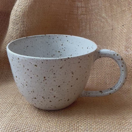 Flecked stoneware adds extra texture on the mug. Smooth but also tactile.
